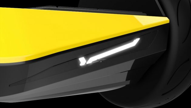 L’equilibrio si raggiunge bilanciando il peso sui piedi, e pure la direzione del veicolo è legata al movimento dei piedi. Ha i parafanghini in alluminio, due pneumatici in gomma da piena da 8 pollici e mezzo e a spingerlo ci pensa un doppio motore da 400 watt. Luci a led davanti e dietro, colori tipicamente racing (arancio, giallo, nero) dispone di tre modalità di guida: Strada (per principianti), Sport (per una…via di mezzo) e Corsa (per gli assatanati esperti). Gli stili di conduzione si differenziano per sensibilità dello sterzo, risposta alla pressione dei piedi sulla piattaforma e velocità massima raggiungibile. Può portare persone pesanti fino a 120 kg e la batteria agli ioni di litio, ricaricabile in 3 ore e mezza attaccandola a qualsiasi presa di corrente, ha una autonomia di circa 15 km.